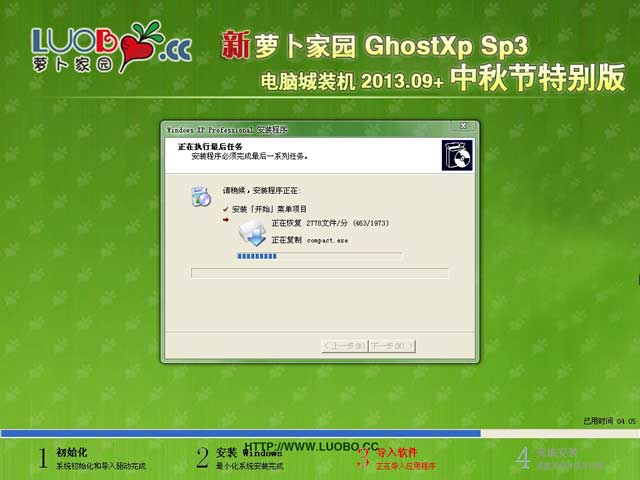 新萝卜家园 GHOST XP SP3 电脑城装机 2013.09 +中秋节特别版