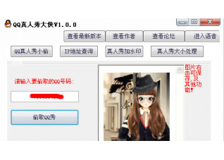 qq真人秀大侠是一款制作修改qq真人秀软件,可以给真人秀加水印以及大小处理,可以输入qq好友中你喜欢的qq秀号码,偷取qq秀,然后图片右击可保存即可。