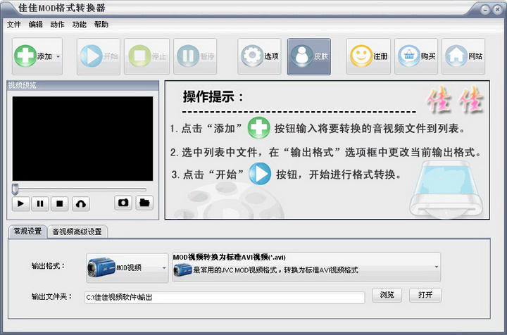 佳佳MOD格式转换器(转换视频格式)支持视频音频格式