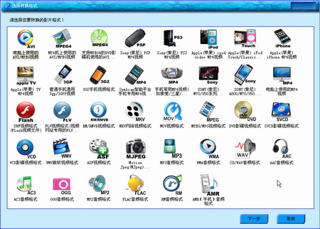6.支持RM、RMVB、AVI、3GP、MP4、MPEG、FLV、SWF、MOV、DVD,VCD,SVCD,WMV等格式的相互转换。