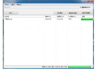 PNGGauntlet汉化中文版是一款优秀的PNG压缩工具,实现批量PNG图片无损压缩。其实PNGGauntlet汉化版是一个外壳,集成了DeflOpt、optipng和pngout三合一png压缩引擎的工具。PNGGauntlet里的一个很好的功能是在进行批量处理的时候能够自动对多个文件进行排队处理。PNGGauntlet工具菜单里的默认选项已经是最佳(最大)压缩设置,除非你打算保留PNG元数据、使用灰度色彩模式等等时候才更改这个值。PNGGauntlet实际上是一个前端工具,它使用三个不同的PNG优化工具(PNGOUT、OptiPNG和DeflOpt)对PNG文件进行了多次压缩,而不是通过所见的只是用一个工具。三个压缩工具的使用确实增加了压缩PNG文件所花费的时间,不过肯定生成了更小的文件。
