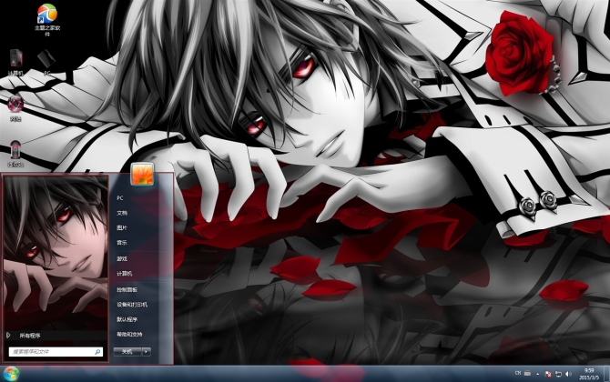 很帅气的帅哥哦,看起来是那么的英俊潇洒的哦,也是《吸血鬼骑士》动漫里的人物哦。这款吸血鬼骑士动漫win7电脑主题,是由win7电脑主题(www.xitong138.com)为您推荐的,看这个帅气的男生,一双大大的眼睛,还是一双具有魅惑的红眼睛哦。