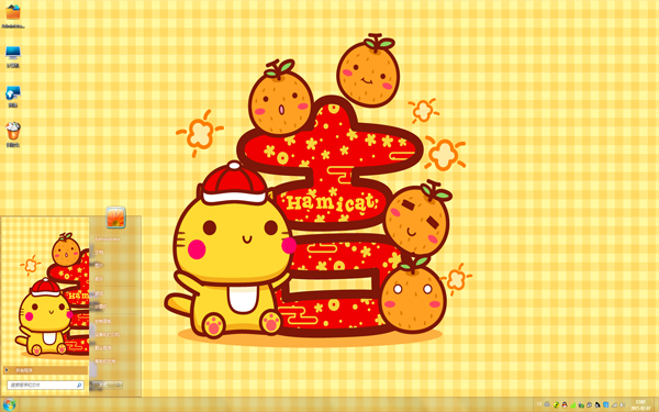 开心哈咪,无所不在,包子头、呆脑袋再加上肥肥的身体就构成了颇具喜感的哈咪猫了,哈咪猫活泼、乐观,有点无赖,别看他肥肥的,头脑可灵活了,喜欢恶整HEMI,拥有不可思议的力量。该款主题桌面中的它正坐在大大的吉字旁边,四周还有各种造型的橘子,透露着春节的气息,新的一年即将到来,萌萌的哈咪猫在这里祝福大家在羊年能够事事顺利,开开心心。