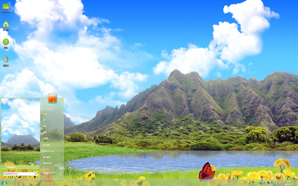 远处的天边挂着一些白色的云朵,在风中慢慢变着形状,此时的天空一片蔚蓝,而白色的云朵在这蓝色的画布上勾画壮丽的景色,成片的山峰连在一起,峰峦叠嶂,山上的树木郁郁葱葱,在山脚下有着一处湖水,此时风平浪静,天空和山峰清晰的倒映在湖面上。近处开满的黄色的鲜花,绿色的草丛,蝴蝶在花丛上采蜜,整个山水构成了一幅美丽的风景画,有着浓浓的春天气息。