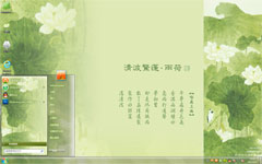 - 软件介绍今天系统之家要给大家推荐的这款主题具有古色古香的味道,这款主题的桌面背景是淡淡的绿色,就像是莲花池的景象,而在桌面的中间是宋朝词人杨万里的一首《咏荷上雨》,整个电脑桌