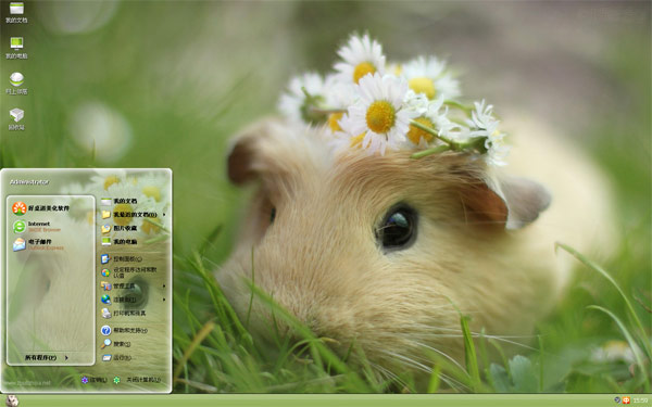 仓鼠是很可爱的宠物之一,所以很多小朋友或女性一看见这种“活毛公仔”时,都会对它爱不释手。仓鼠作为很多人养宠物的选择,因为它小小的很可爱机灵,今天小编为大家原创制作了这款可爱仓鼠xp主题下载,这款桌面主题的电脑桌面是一只黄色毛毛的小仓鼠伏在草丛中,头上还带着白色雏菊的花环呢,看来这只仓鼠的主人很喜欢这只宠物哦~大眼睛炯炯有神的看着,相信你一定也被它吸引住了吧~