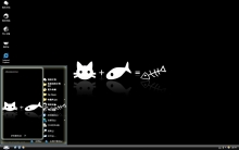 - 软件介绍这是一款非常简单的卡通XP主题。画面中的主角可爱的小喵咪,还有一条小鱼哦。这款猫吃鱼卡通xp主题,是由电脑桌面(www.xitong138.com)为您奉送的,很简单的黑白画面,黑黑的画面里画