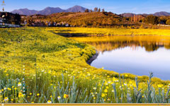 不知不觉来到了无人的郊外,远处是一片黄色的油菜花,就像大地披上了一件金黄色的大衣,此时春色正好,油菜花生