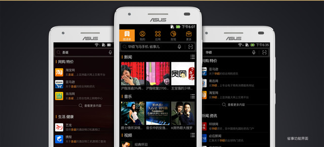 有华硕飞马"省事儿"智能桌面,让你从此不用再安装繁琐APP,时刻与精彩随行,轻轻一点就能更新身边各类有用资讯,快点拿起你的华硕飞马智能手机试试吧!