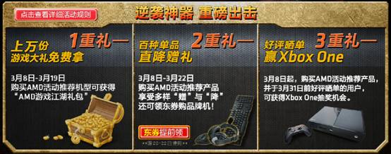 ● 三重礼:3月8日-3月31日,购买AMD活动推荐产品,好评晒单可获得Xbox One抽奖机会。