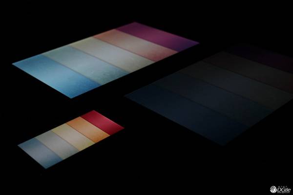 从上面的图示看出,在可视角度方面,这两款设备是没有问题的。但色彩上二者均有偏差,特别是纯红色的图片在W10上看起来更像是橘红,而W11则亮度明显不足(已调整到最高亮度)。同时,可以看到有渐变色的几张图片反映出来的结果是,两台平板的色域比较局限,不如iPhone来得广,因而显示出来的东西冲击力不足。此外,颜色的饱和度和细腻程度也都不太如意。