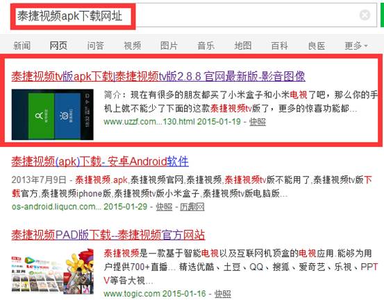 三:电脑上下载"泰捷视频APK"打开浏览器--百度搜索泰捷视频--进入官网--下载泰捷视频APK到电脑桌面上。