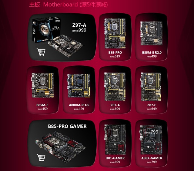 参加本次优惠活动的主板包括Z97、Z87、B85、A88和H81系列主板