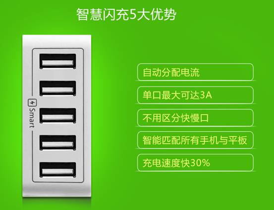 充iPad平板电脑比普通市面充电器快很多。产品内部有智能检测芯片,可根据不同数码产品设备调节所需的最大电流,既保护设备,又能快速充电,真的智能充电器。