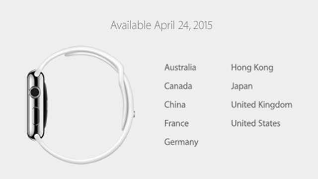 最后苹果表示,Apple Watch将于4月10开启预购,并将在4月24日起正式发售。好消息是,中国以及中国香港都在首发地区。