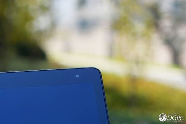 由于采用了 16:10 比例的屏幕,修长的V8 pro看起来就像一部大号手机,正脸宛如黑脸包公,漆黑一片,没有 logo、没有 win8 图标,反光效果自然也是一流,当个镜子无压力;背面有同心圆的纹理,材质为工程塑料,却营造了橡胶材质的手感,防滑、耐脏效果出色;正中有大大的金属 DELL logo,底部同样有" Intel inside "。