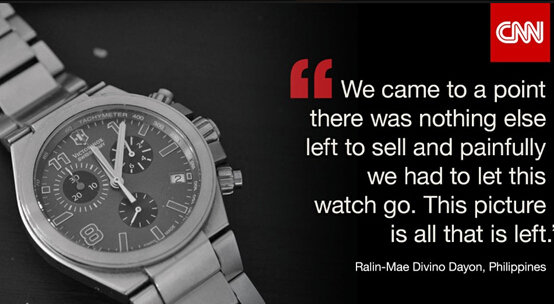 拉林-梅?迪威诺?戴恩(Ralin-Mae Diving Dayon):“我们走到没有其他东西可以卖了的境地,于是我们只好很悲伤地把这块表卖了。这张照片是唯一剩下的纪念。