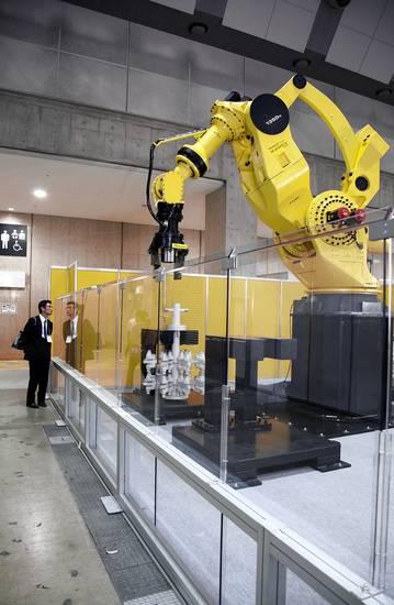 在建筑群内部的22座工厂中,大量的黄色涂装机器人一天24小时地工作,不停地复制与自己相同的产品。在生产过程中,也有少数工人负责监督,他们生产更多的机器人以及机床,并通过向外出售为发那科创造利润。