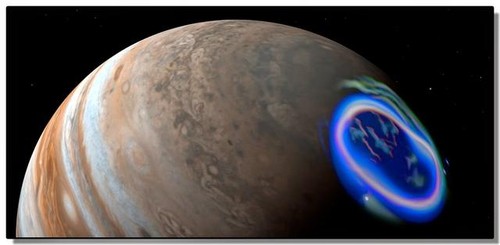 木星观测者知道这颗巨大行星经常出现极光,比地球极光明亮数千倍,并且覆盖范围是地球面积数倍,通常他们认为木星极光是太阳带电粒子与木星磁场发生碰撞所产生的,也可能是由于木星和它的卫星单独交互作用所致。
