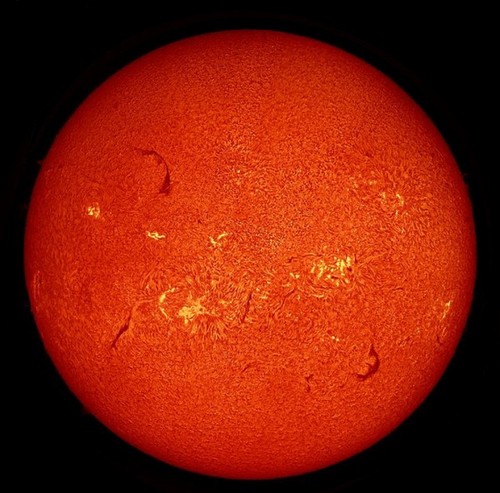 据英国《每日邮报》4月6日报道,英国72岁业余摄影师戴夫·泰勒在自家后院建造的天文台上,抓拍到一系列惊人的太阳美景。泰勒是一名退休工程师,他自建天文台,拍摄了许多壮观的太阳活动照,如日珥、日冕以及太阳黑子和太阳耀斑等。这些照片显示了太阳极大期(solar maximum)时太阳表面的剧烈运动。在极大期时,太阳正处于11年周期中最活跃状态。