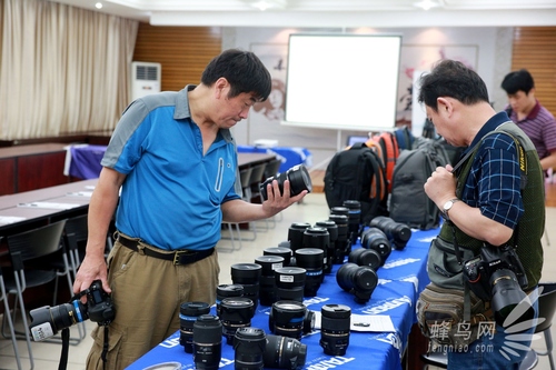 早些时候到达活动现场的影友看到摆在桌面上的腾龙镜头也忍不住上前了解,大家相互探讨拍摄经验和腾龙镜头的使用心得。