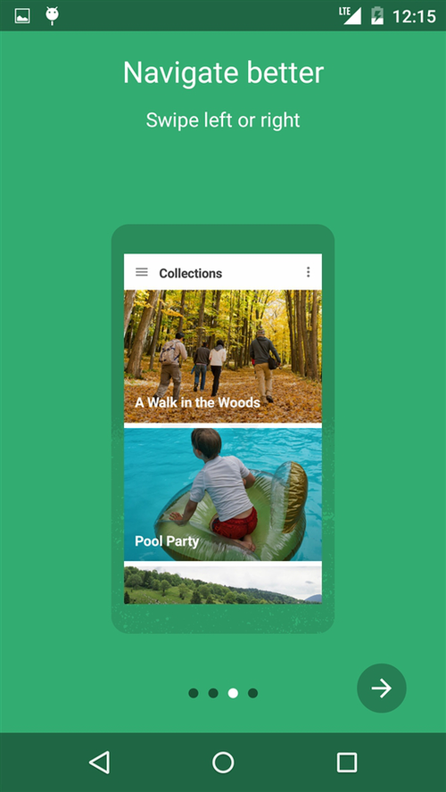 同时,Android M的照片管理应用还加入了数种新的操作手势和管理分类方式,比如触摸拖动来选中多个图片以及按日期或通过人脸匹配来归类照片等等。