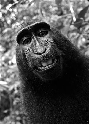 这只苏拉威西猕猴4年前拾到斯莱特的照相机,无意摆弄间拍下了几张咧嘴大笑的滑稽自拍照,后来被斯莱特出书公布。如果原告胜诉,这将是史上首次有动物被判定拥有知识产权。