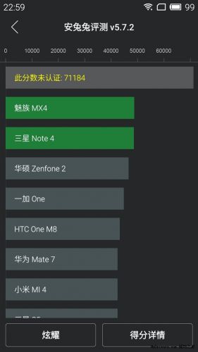 在给大家送上开箱图赏之后,笔者第一时间对其进行了跑分体验,最终的结果尽管没有发布会上说的7.5万分那么给力,但7.1万分也足够彪悍了。