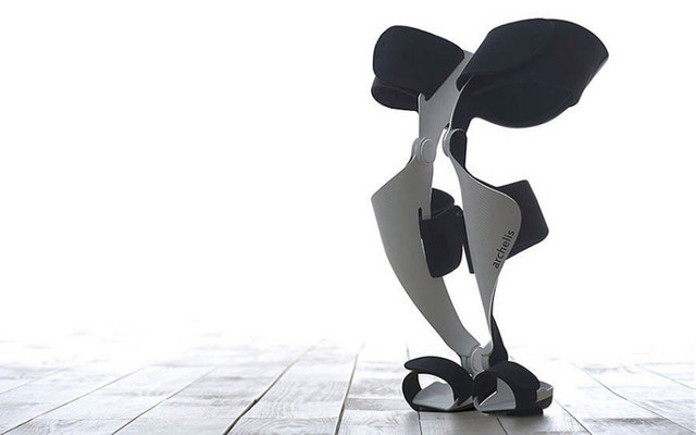 Archelis看上去和骑摩托的人穿的护膝有些类似,有两条稍硬的支架支撑着腿部站立,同时又有绷带绑住腿部、腰部和臀部,方便坐下去的时候提供支撑力。有了Archelis,医生在手术过程中就可以在方便的时候坐下来进行手术。
