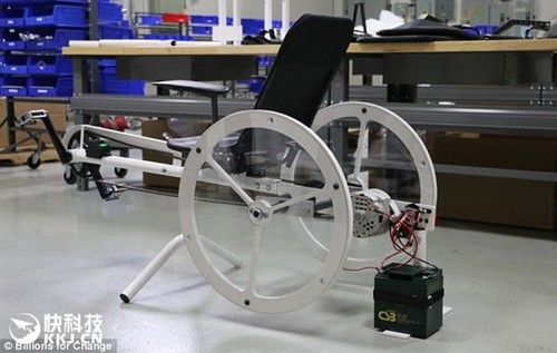 就结构而言,这辆发电脚踏车市面上的自行车大同小异,有轮毂、齿轮、脚蹬子……当然为了发电,它还提供了发电机、电池等。当发电时,只需舒服的躺着蹬就行了。
