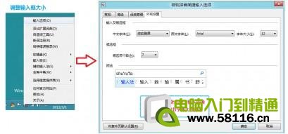 右下角输入法处右键打开输入法输入选项,外观选项卡中修改外观中字体大小,确定即可。