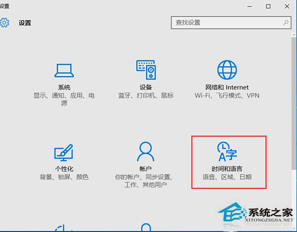 1、打开开始菜单,进入设置,然后选择“时间和语言”。