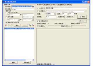 轻松实现批量添加水印的功能,简单易用,处理高效;支持批量图片缩放处理;支持jpg,bmp,png图片格式;支持文字与图片水印;支持批量文件大小处理;支持批量转换为jpg格式;支持图片批量截取;支持图片等比缩放;自动保存与打开最近一次的操作参数。